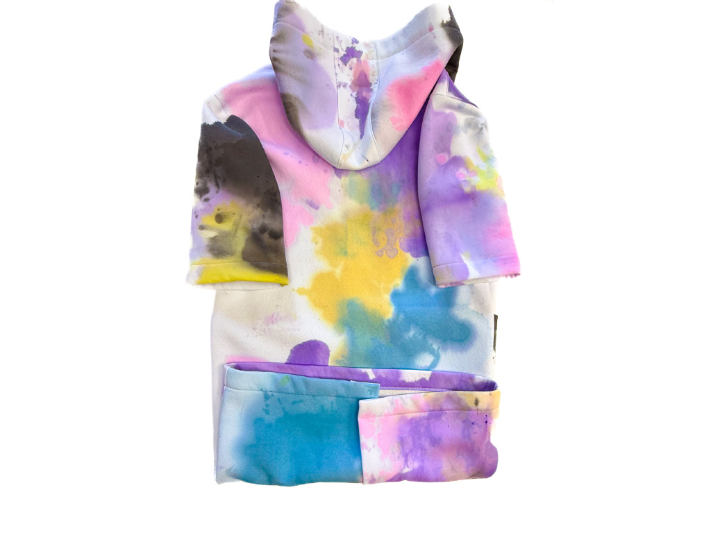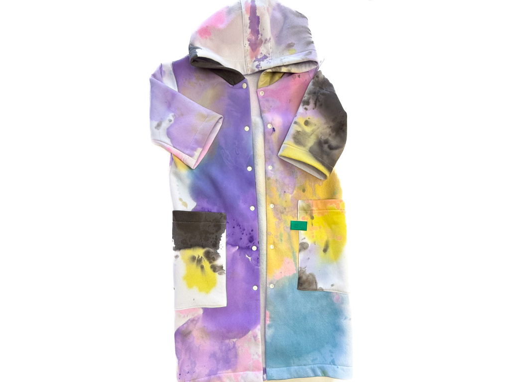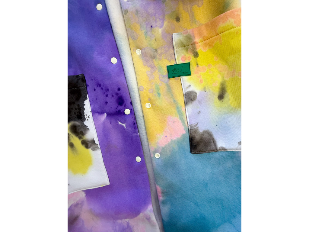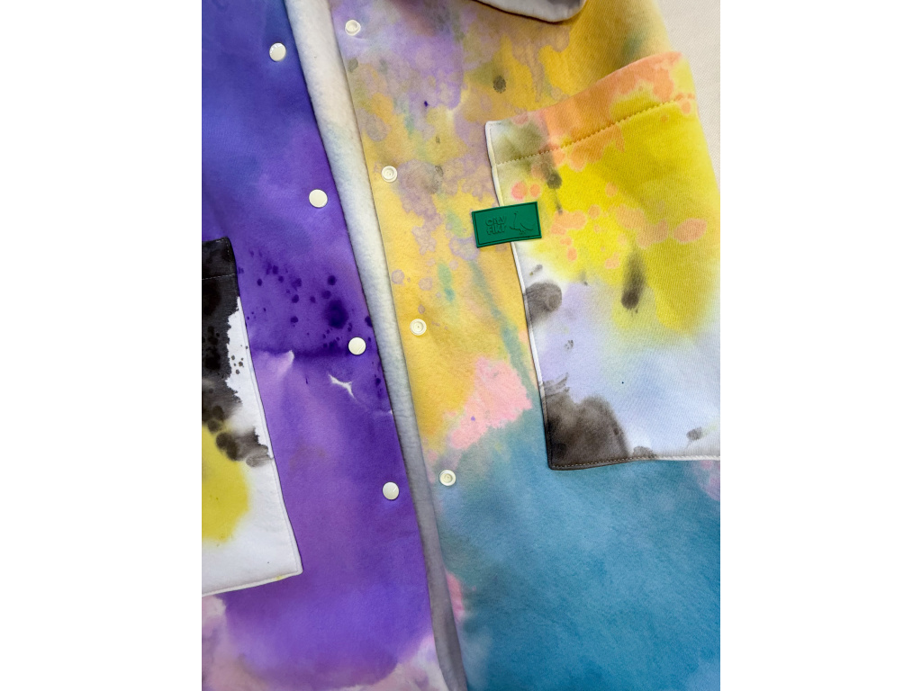 Propínací kabát z vysokogramážního bavlněného výpňku, ručně barveno. S velkými kapsami a prostornou kapucí. zapínání na cvoky. Dostupno ve dvou velikostních provedeních S/M a M/L. Rukáv 3/4. V tomto tě nikdo nepřehlédne, skvěle se kombinuje s ostatními produkty z řady Paint Overdose i s jinými.