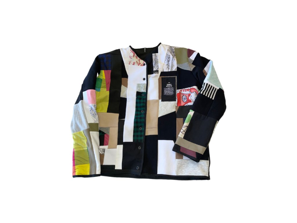 Tohle je pecka a srdcovka. Oboustranná bunda, která ti poslouží v mnoha situacích. Na slušňáka k minimal ohozu a stejně tak k dost výstřednímu štrýt outfitu. Ocení je i tvá babi a máma a ty v něm zazáříš mezi vrstevníky. Na černé straně jsou kapsy. Bunda je vhodná na přechodové období. Ušitá z větší části ze zbytkového materiálu a tak skvěle zapadá do našeho Zero Waste Konceptu. Prostě ráno vejdeš do kanclu stylově a v poledne na schůzce jen otočíš strany. Je verzatilní a stane se z ní tvá nej bunda, to jsme si jisti. Na barevné straně nášivka s textem týkajícím se Zero waste filozofie. Zapínání na cvoky.