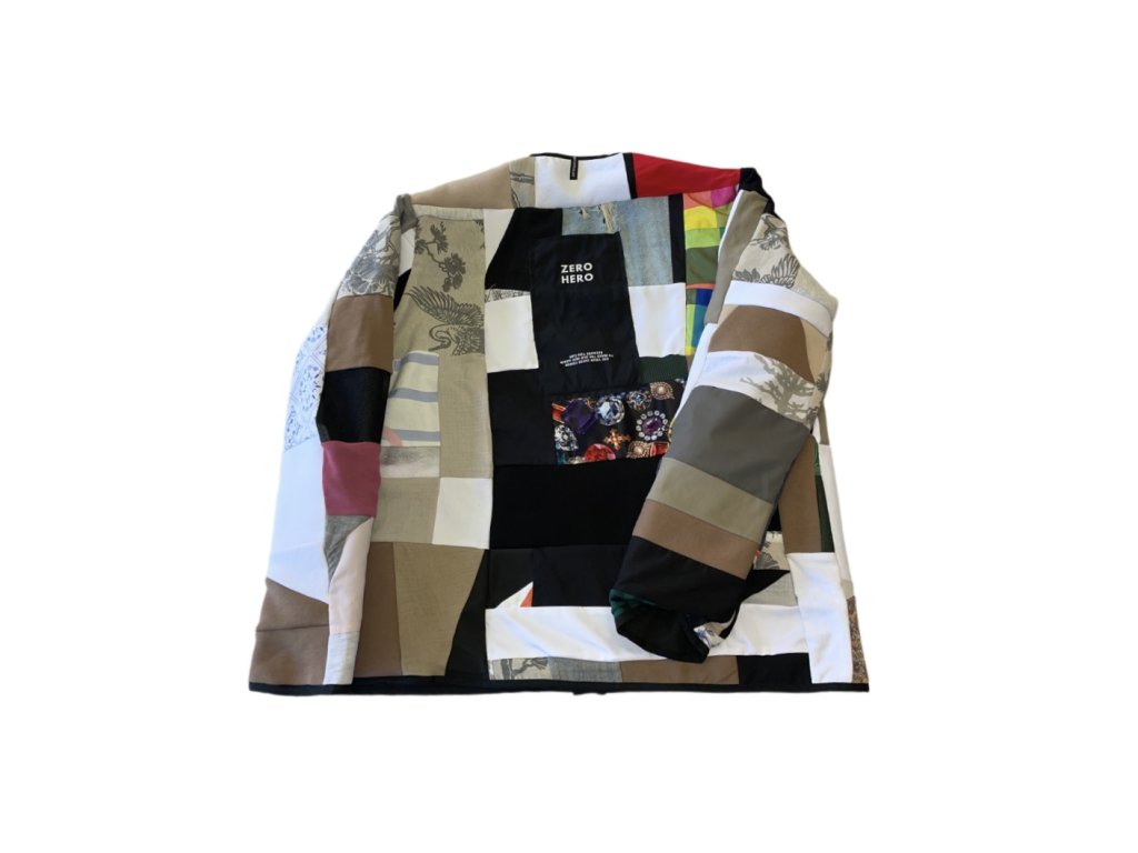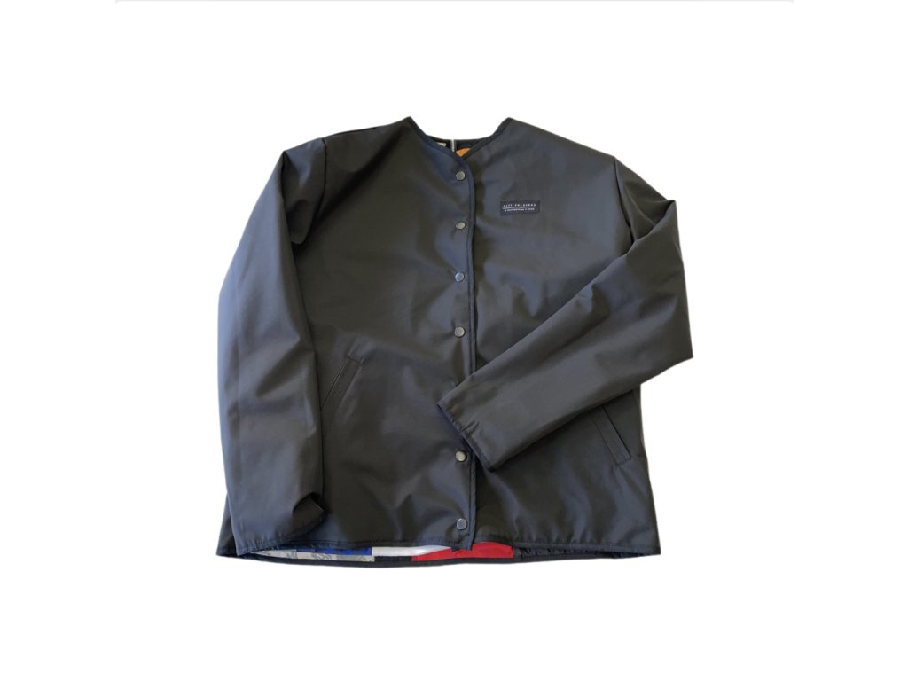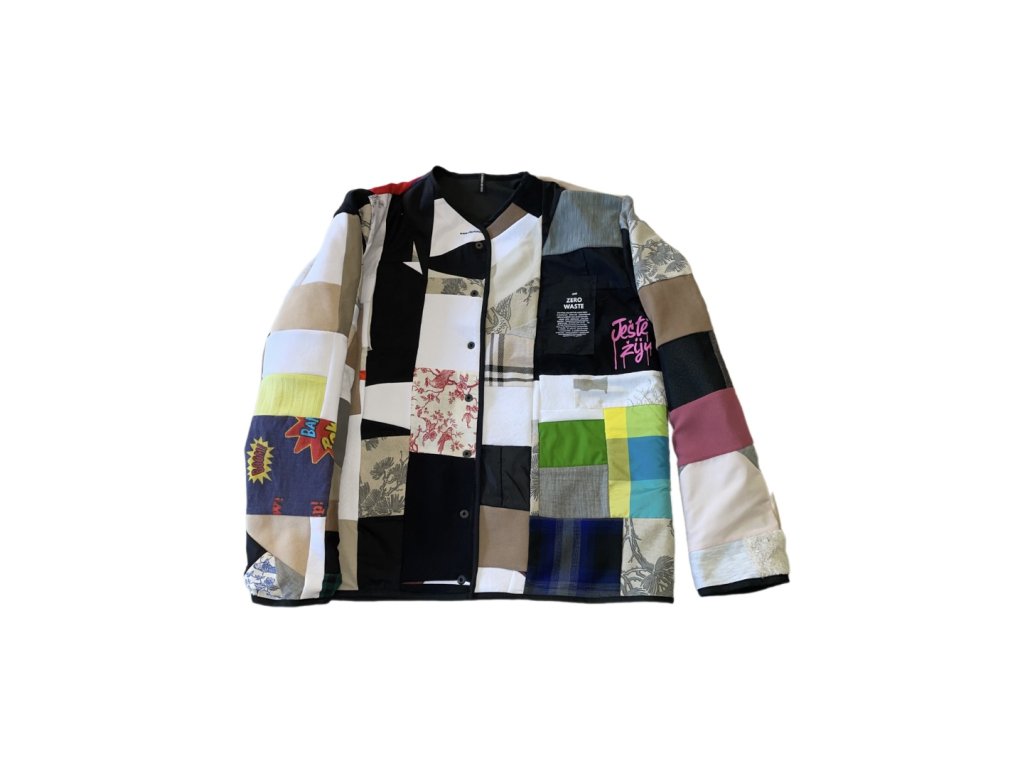 Tohle je pecka a srdcovka. Oboustranná bunda, která ti poslouží v mnoha situacích. Na slušňáka k minimal ohozu a stejně tak k dost výstřednímu štrýt outfitu. Ocení je i tvá babi a máma a ty v něm zazáříš mezi vrstevníky. Na černé straně jsou kapsy. Bunda je vhodná na přechodové období. Ušitá z větší části ze zbytkového materiálu a tak skvěle zapadá do našeho Zero Waste Konceptu. Prostě ráno vejdeš do kanclu stylově a v poledne na schůzce jen otočíš strany. Je verzatilní a stane se z ní tvá nej bunda, to jsme si jisti. Na barevné straně nášivka s textem týkajícím se Zero waste filozofie. Zapínání na cvoky.