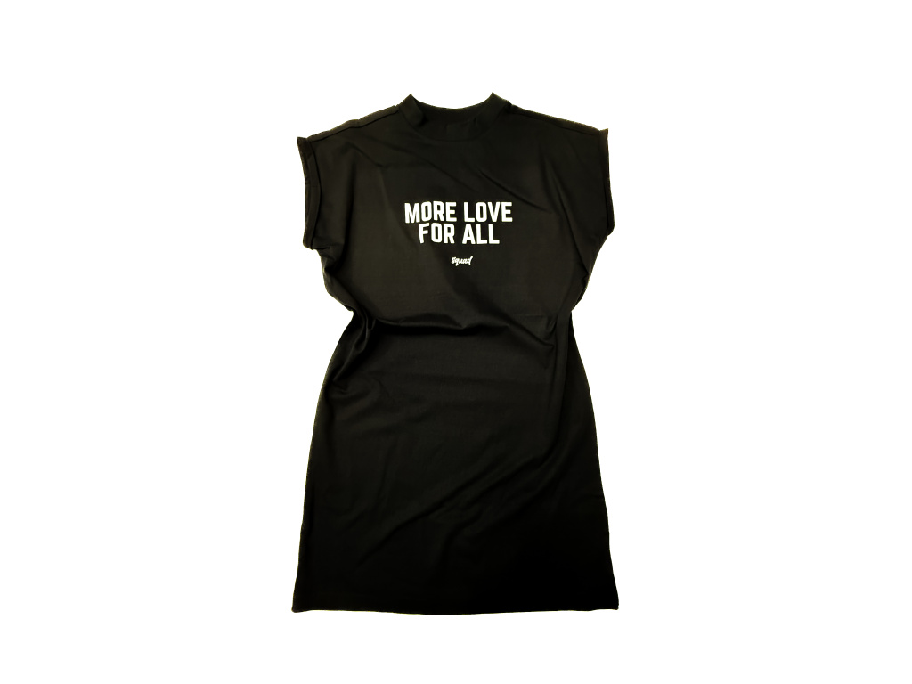 Šaty ležérního střihu s potiskem termotransferu na předním díle. Případný čtverec mírně odlišné barvy okolo designu po vyprání zmizí.