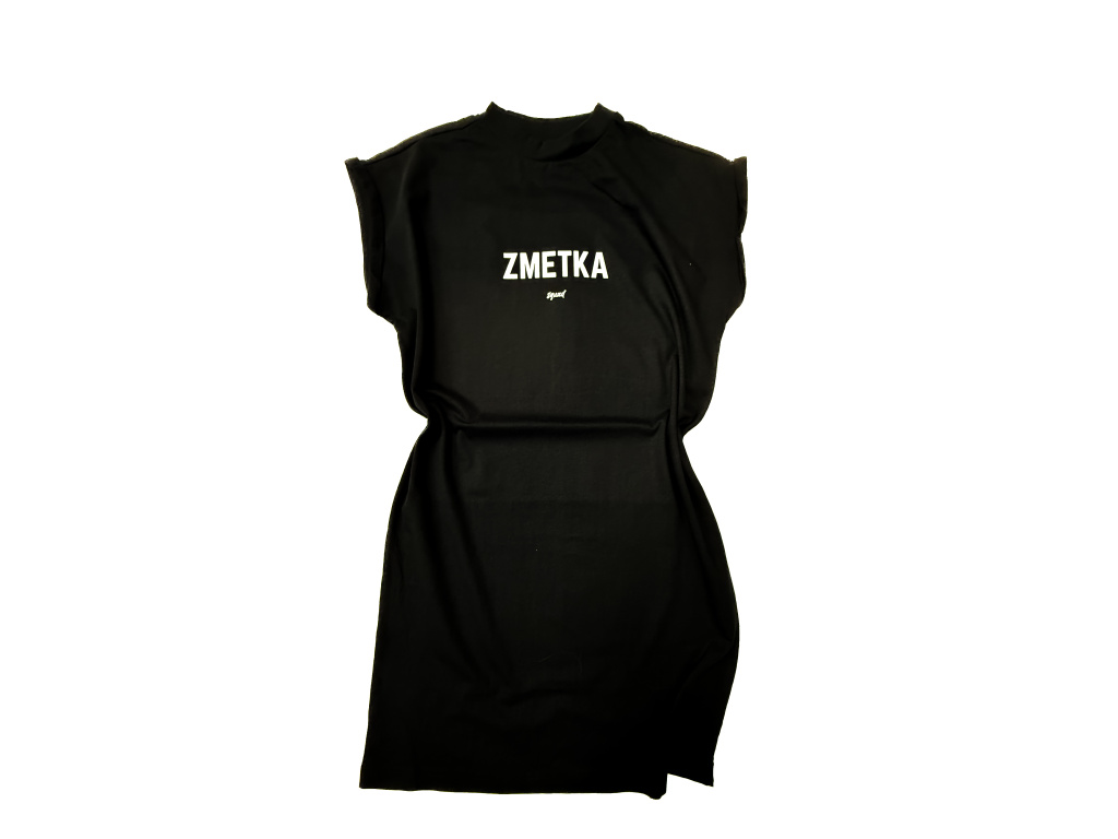 Šaty ležérního střihu s potiskem termotransferu na předním díle. Případný čtverec mírně odlišné barvy okolo designu po vyprání zmizí.