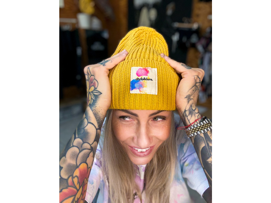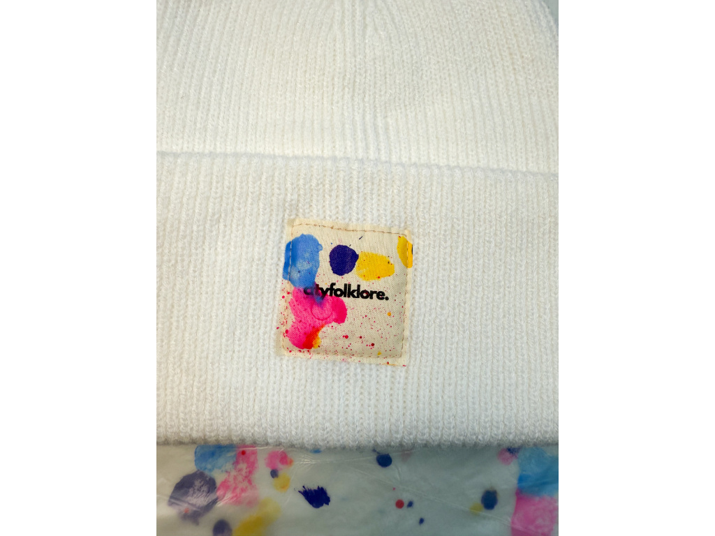 Materiál: akryl/recyklovaný polyester/ručně barvený štítek