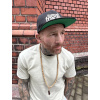 Vyšší snapback s rovným kšiltem. Kšilt je na spodní straně zelený.