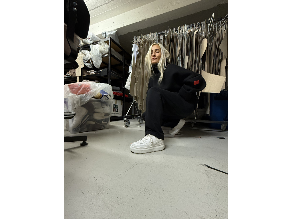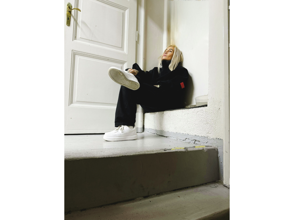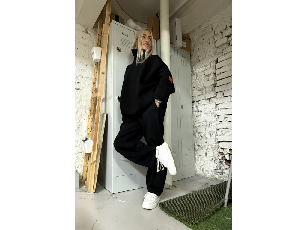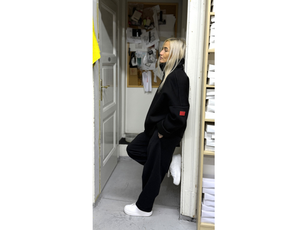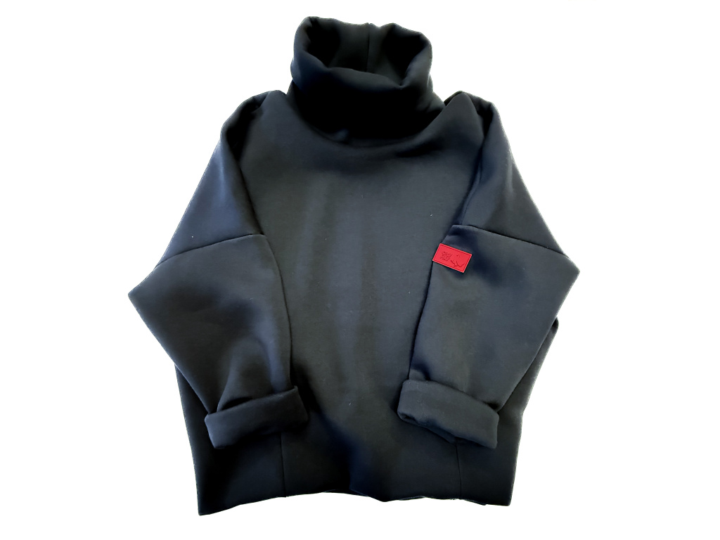 Podzimní mikina z vysokogramážního výpňku s vysokým dvojitým límcem a podšivkou ze síťoviny. Rukávy bez lemu, zdvojené. Spodní strana se záševky a zdvojením. Na rukávu gumové logo.