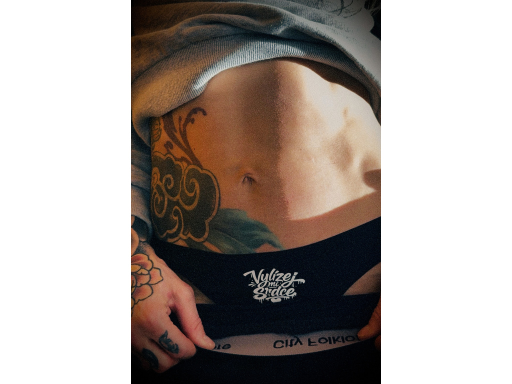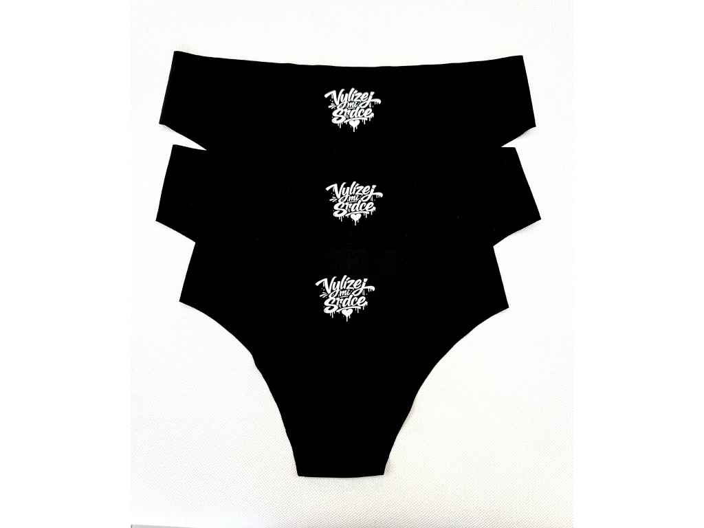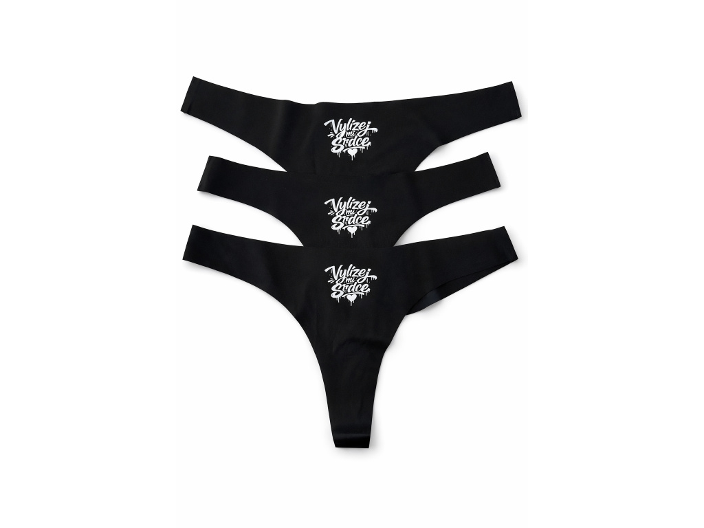 Bezešvé kalhotky ve střihu běžných kalhotek a tang. Tamnga mají potisk na předním díle, kalhotky na zadním.