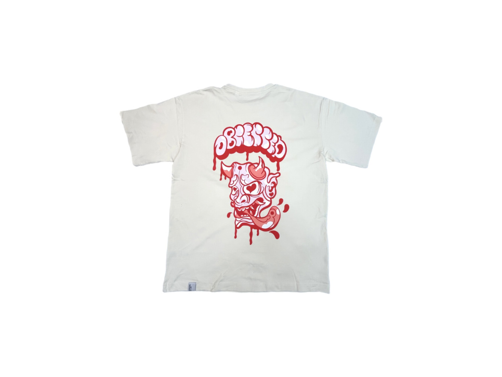 Triko oversized střihu s velkým potiskem designu obssessed na zádech a malým na předním díle.