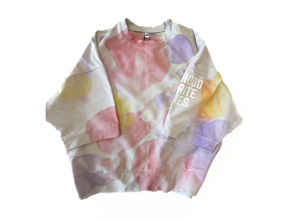 Halena oversized crop střihu vysoké gramáže. Ručně barvená, fixovaná a následně potisknuta jedním z našich designů na rukávu. Každý kus je nezopakovatelný originál.