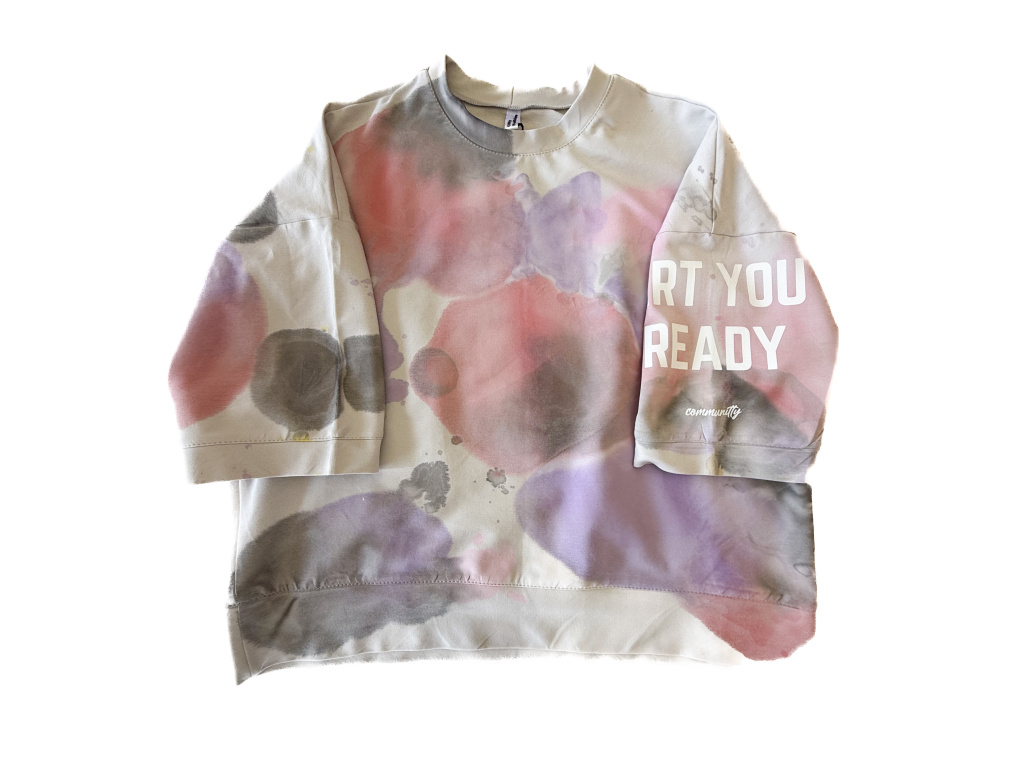 Halena oversized crop střihu vysoké gramáže. Ručně barvená, fixovaná a následně potisknuta jedním z našich designů na rukávu. Každý kus je nezopakovatelný originál.