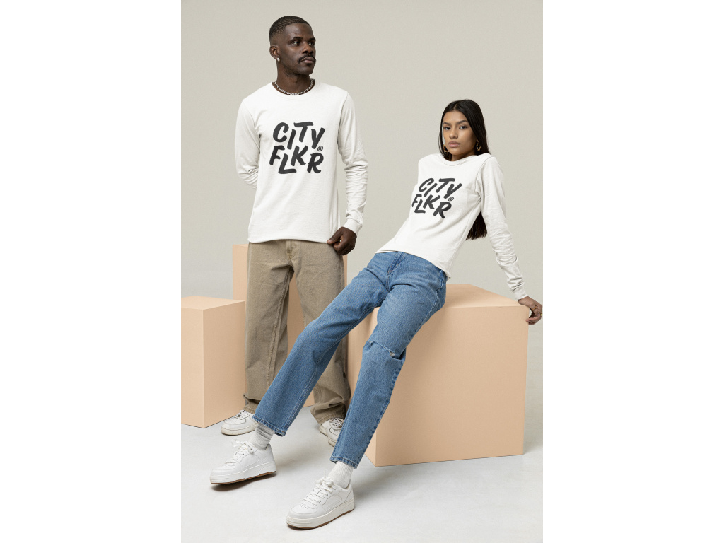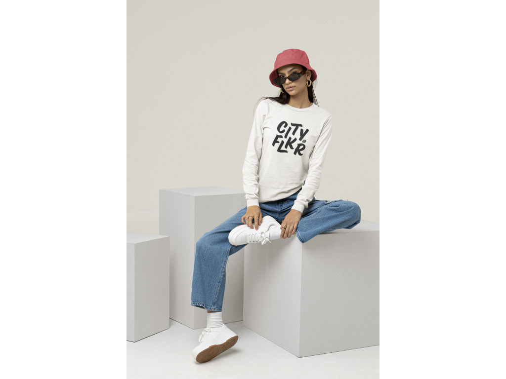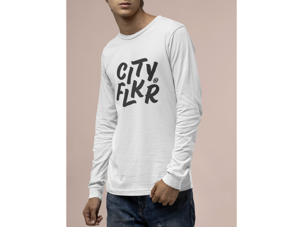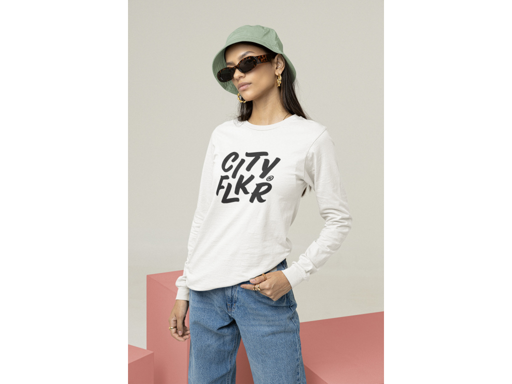 Unisex basic triko s dlouhým rukávem a designem rozházeného loga na prsou.