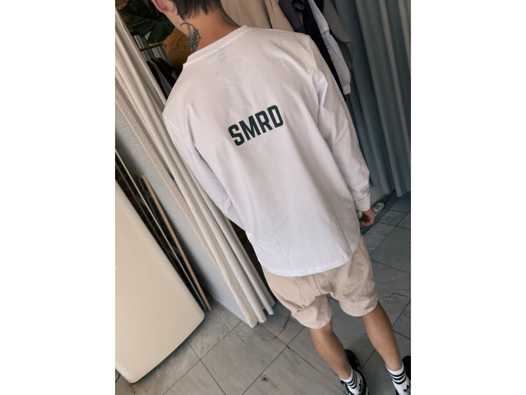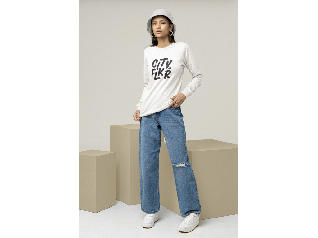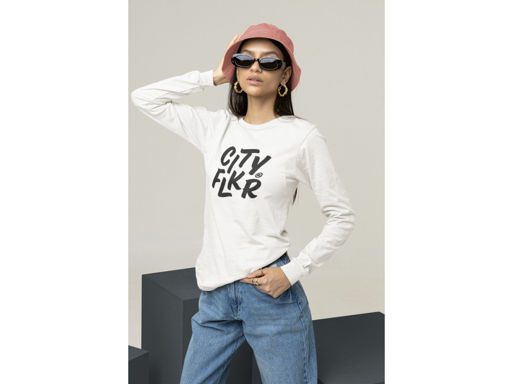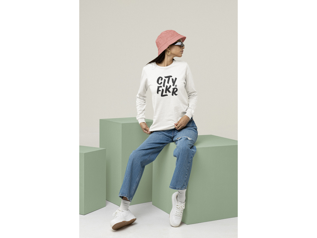 Unisex basic triko s dlouhým rukávem a designem rozházeného loga na prsou.