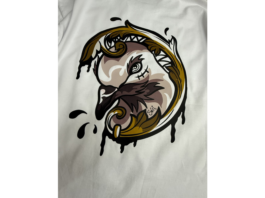 Holub je natištěn na mírně oversized Boxy Triko vysoké gramáže.